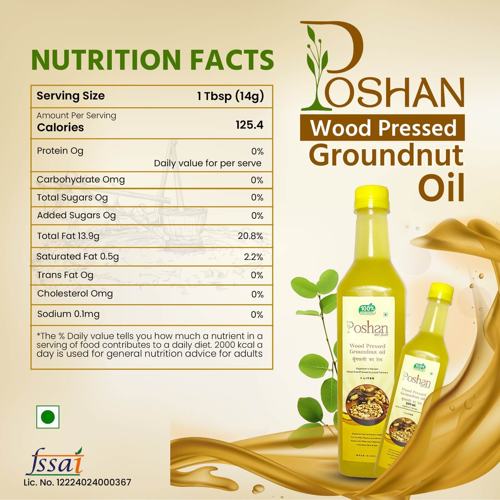Discover the rich aroma and natural taste of wood cold pressed groundnut oil, extracted using the